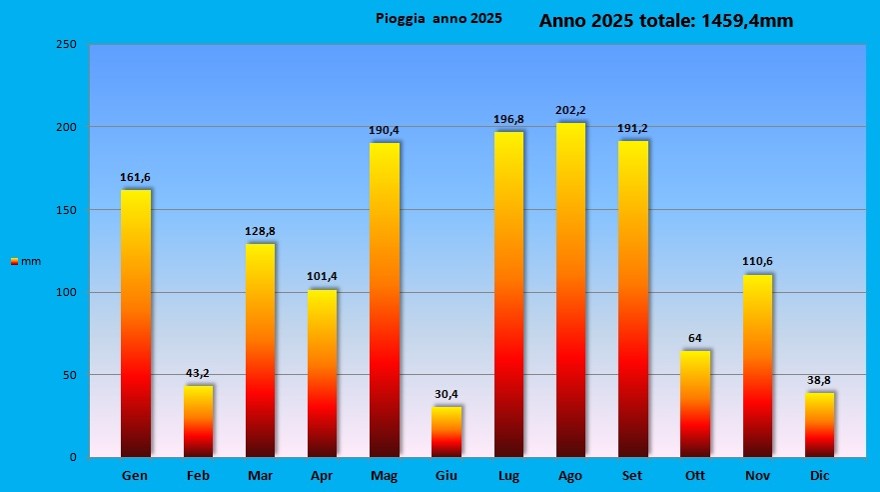 Millimetri di Acqua caduta mensilmente – Rilevazione a S. Giovanni Bianco 2026