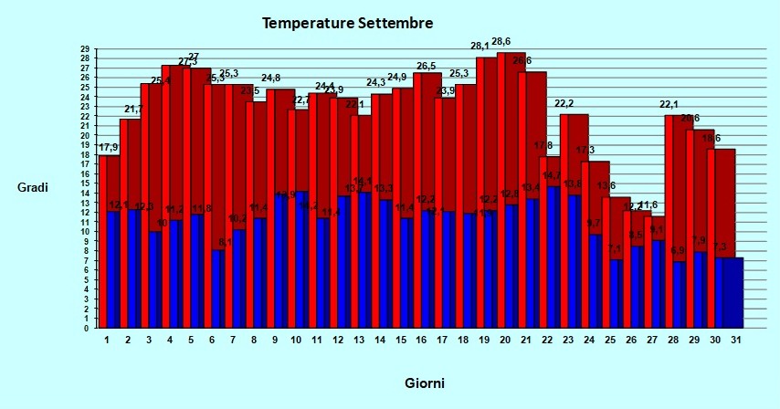 TEMPERATURE MINIME E MASSIME MESI ANNO 2025