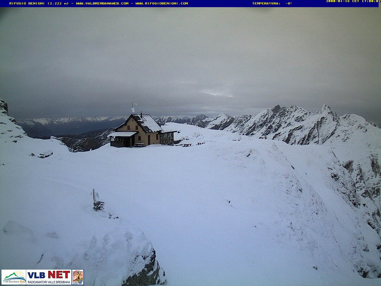 Webcam fisse Orobie 2 Webcam Monte Torcola Webcam Monte Zucco Webcam Viadotto di Sedrina Webcam Foppolo Webcam Val Taleggio Webcam Valle Seriana Webcam Valle Imagna Webcam in Sequenza Home Webcam Valle Brembana - Alpi Orobie e Prealpi Orobiche (pag.1) Rifugio Cesare Benigni (2222 m) Rifugio Marco e Raimondo Balicco (1963 m) Torcola Vaga Piazzatorre (1790 m) Rifugio Madonna delle Nevi (1350 m) Carona (1122 m) Roncobello (1007 m) Valtorta Centro (900 m) San Pellegrino Terme (350m) Torcole alta valle brembana Webcam fisse Orobie 2 Webcam Monte Torcola Webcam Monte Zucco Webcam Viadotto di Sedrina Webcam Foppolo Webcam Valle Seriana Webcam Valle Imagna Webcam Valle Taleggio Webcam in Sequenza Home Informazioni utili Informazioni Meteo Sat Satellite, Ultimo scatto Forum Meteo Radar Live Carte Precipitazioni Carte Temperature Rilevazioni Precipitazioni Rilevazioni Temperature Spaghi Alta e Bassa Valle Carte Bolam Carte Moloch