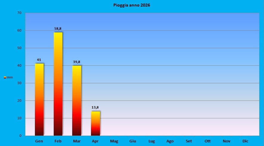 Millimetri di Acqua caduta mensilmente – Rilevazione a S. Giovanni Bianco Anno 2026