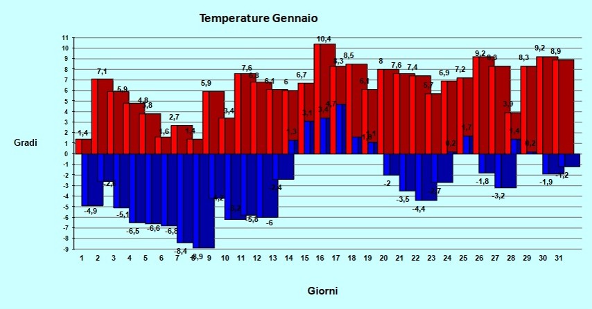 Temperature rilevate a San Giovanni Bianco in Val Brembana alt. 400 mt s.l.m.