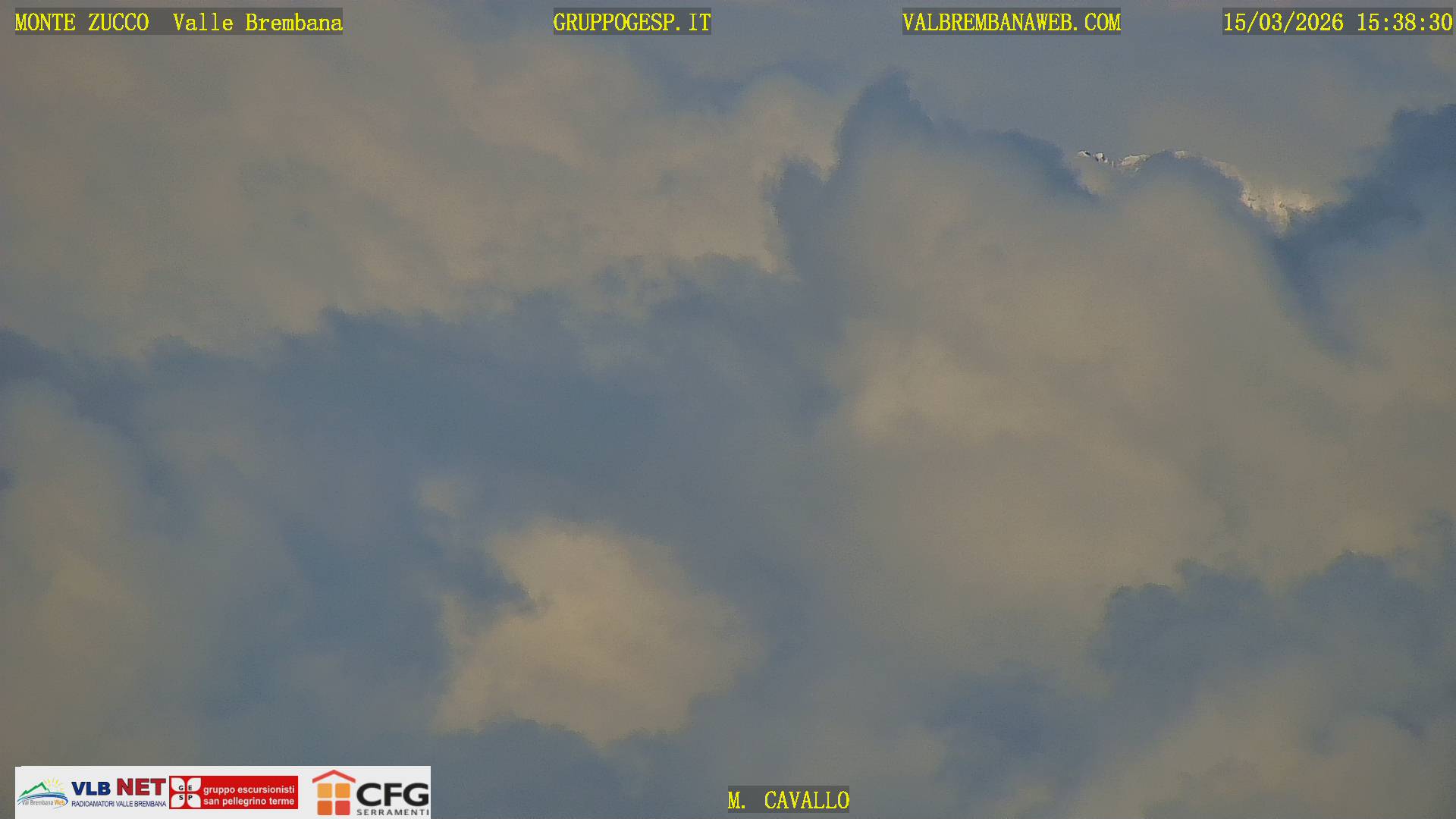 Webcam Monte Zucco – M. Cavallo e Pizzo Cavallino, in secondo piano vetta Monte Disgrazia, in basso a destra Arco del Pegherolo