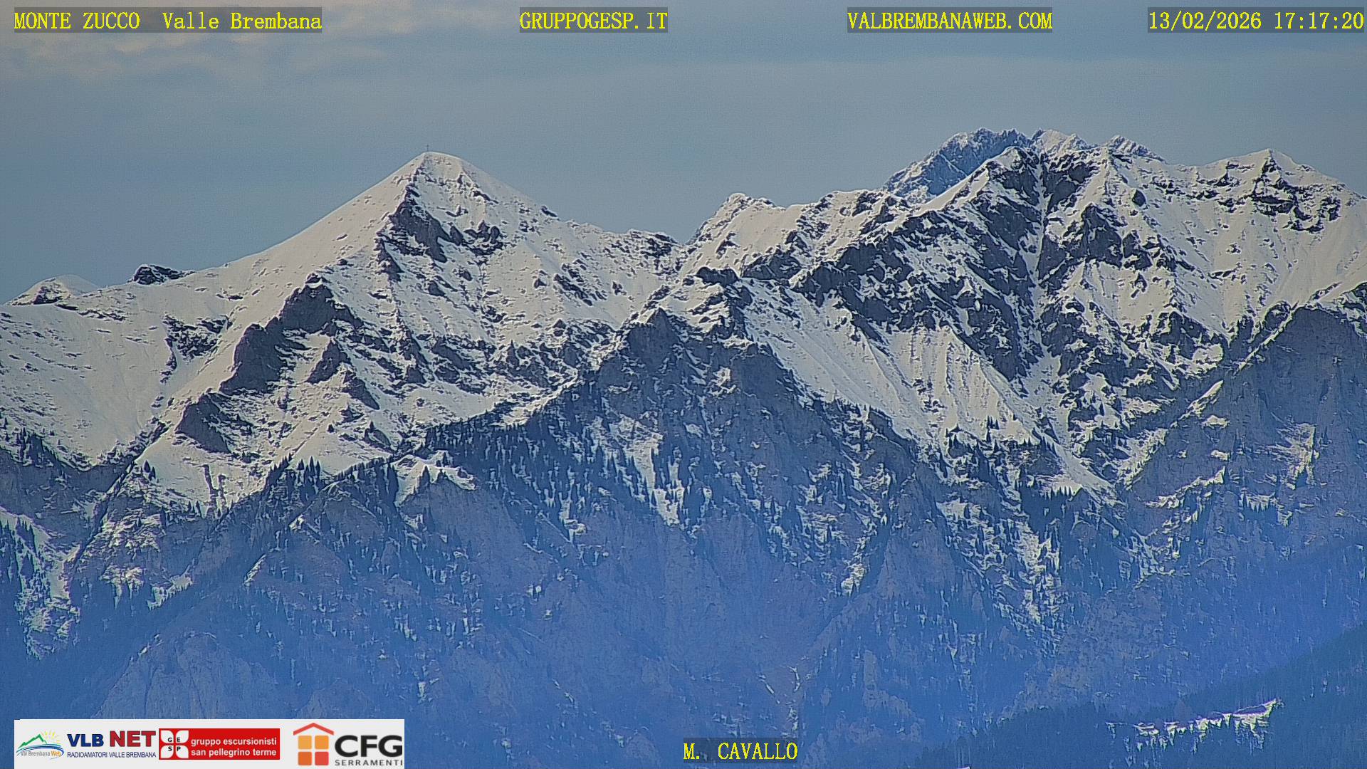 Webcam Monte Zucco – M. Cavallo e Pizzo Cavallino, in secondo piano vetta Monte Disgrazia, in basso a destra Arco del Pegherolo